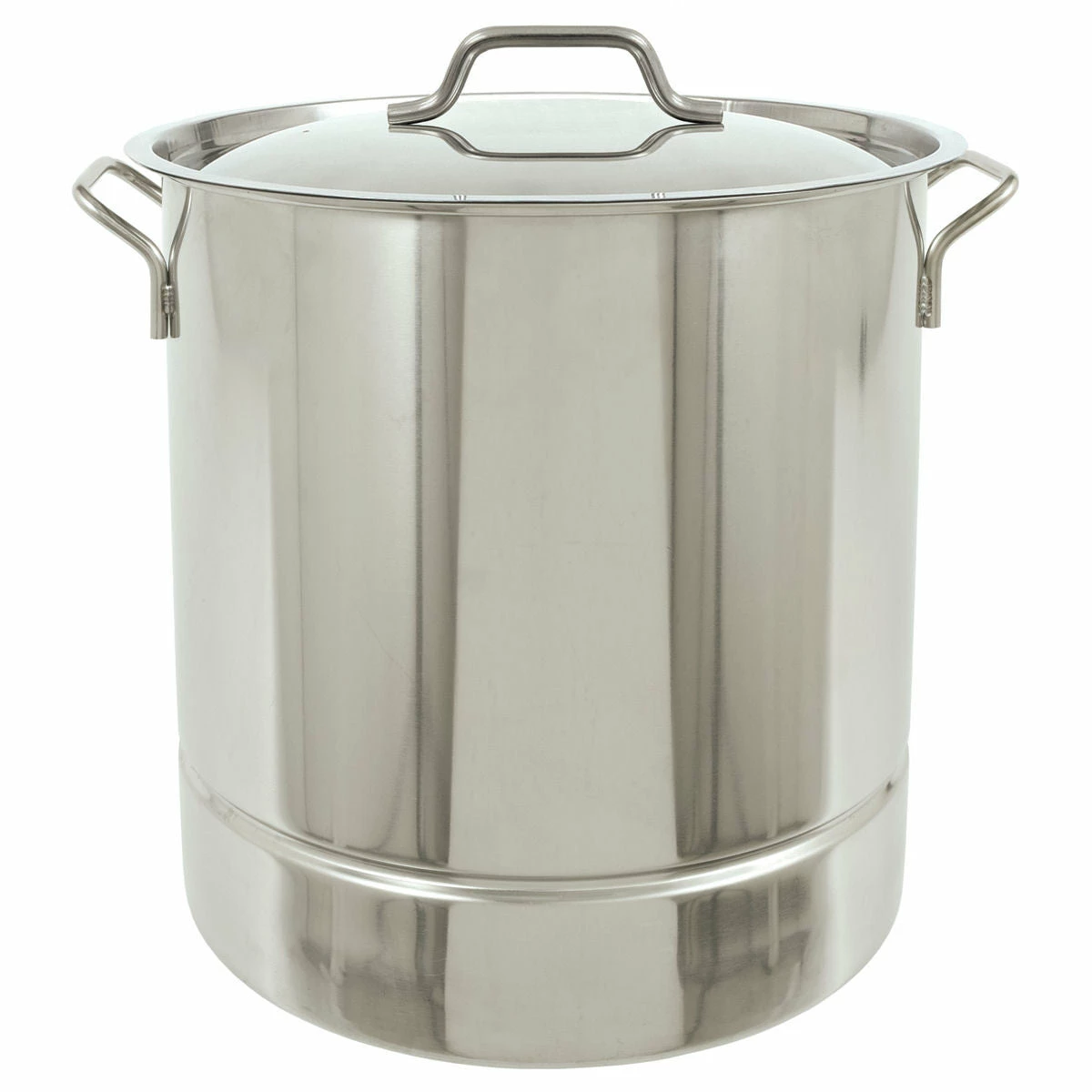 The 16 Gallon Bayou Classic Tri-Ply Stock Pot is a 64 quart stainless steel stock pot with tri-ply bottom. What guys like about the 16 Gallon Bayou Classic Tri-Ply Stock Pot is the stock pot has all the functionality of a stainless steel stock pot with the heat distribution of an aluminum stock pot. The 16 Gallon Bayou Classic Tri-Ply Stock Pot also has a lower side indentation for supporting steam trays for steaming and false bottoms for brewing (sold separately).