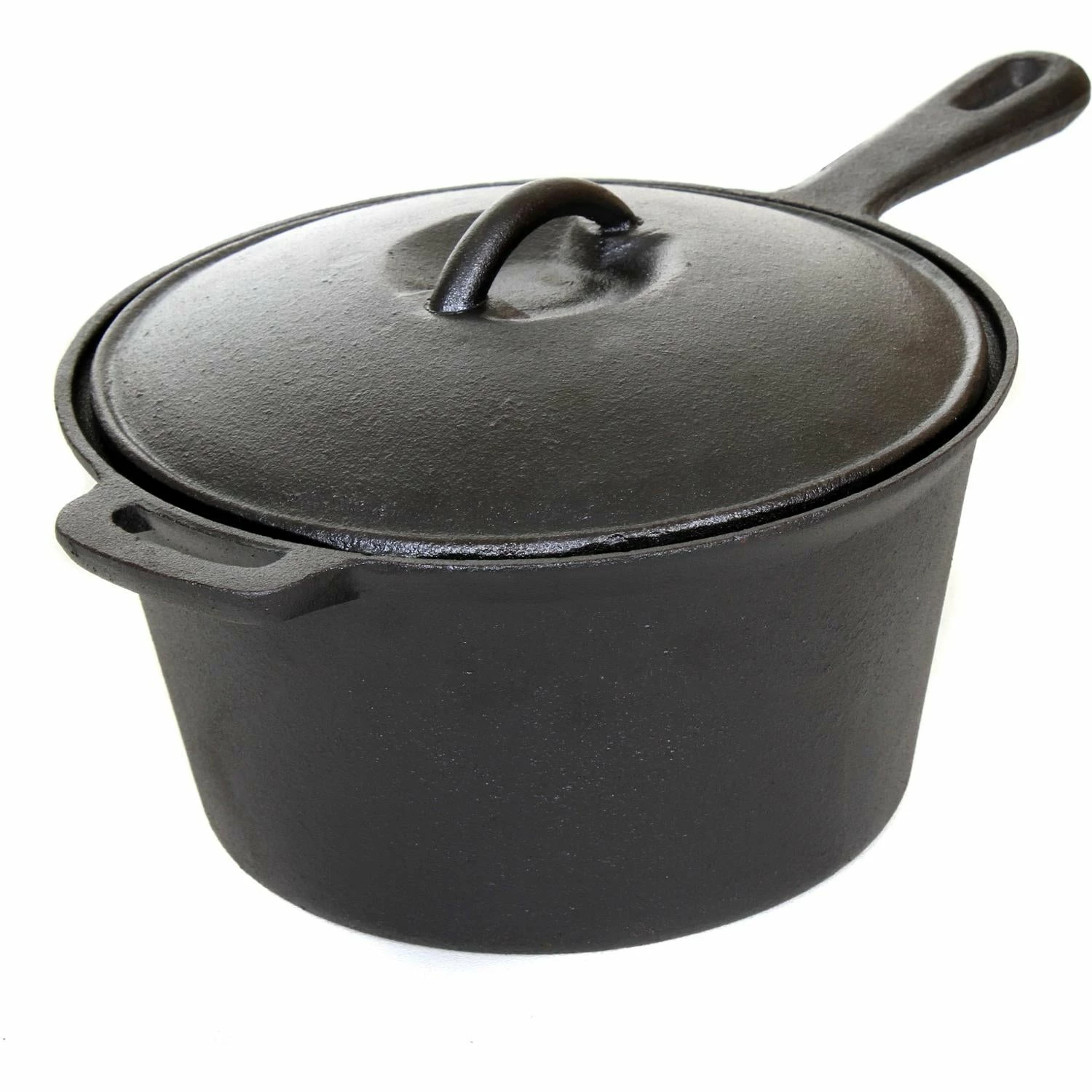 This Cajun Classic 3-Qt. Sauce pot is made of heavy-duty seasoned cast iron and includes a lid. This Cajun Classic pot interior measures 3. 5 inches deep x 7. 25 inches wide and the total exterior length including handle is 13 inches. This Cajun Classic dutch oven is pre-seasoned to perfection and ready for use. Cast iron cookware makes for superior heat retention, even heating of foods and provides nutritional iron intake. Heavy-Duty and durable, designed to last for years. Hand wash with stiff brush and hot water.