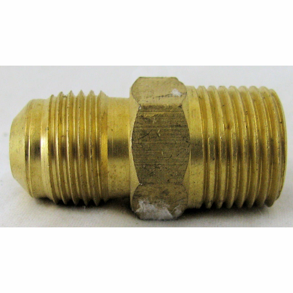 Hose to low pressure regulator male / male brass fitting. Brass adapter to add another hose for distance from source to the regulator.