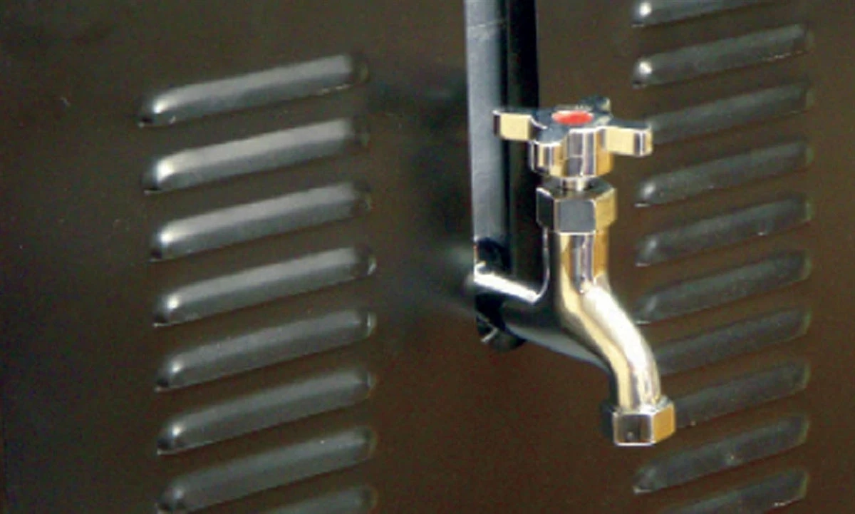 - 36 Quart “V” Bottom Steel Rectangular Pot with Hinged Lid and Spiral Cool Grip Handles with Spigot for Easy Draining