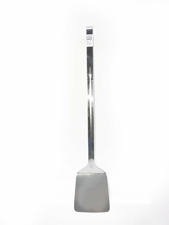 Solid hamburger spatula with a hook to hang on the side of your grill. This is a must have for any Master Griller!
